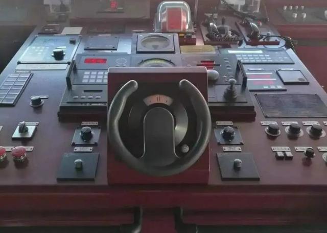 假如在海上作战时,本舰的主舵机战损,就可以使用人工液压泵驱动备份舵机,维持军舰航向。旁边头戴耳机,手握操纵杆的,是人工舵手,此时人工舵手无法同步观察海面,就需要上层甲板上有人负责指挥方向,再向舵机舱传递命令。